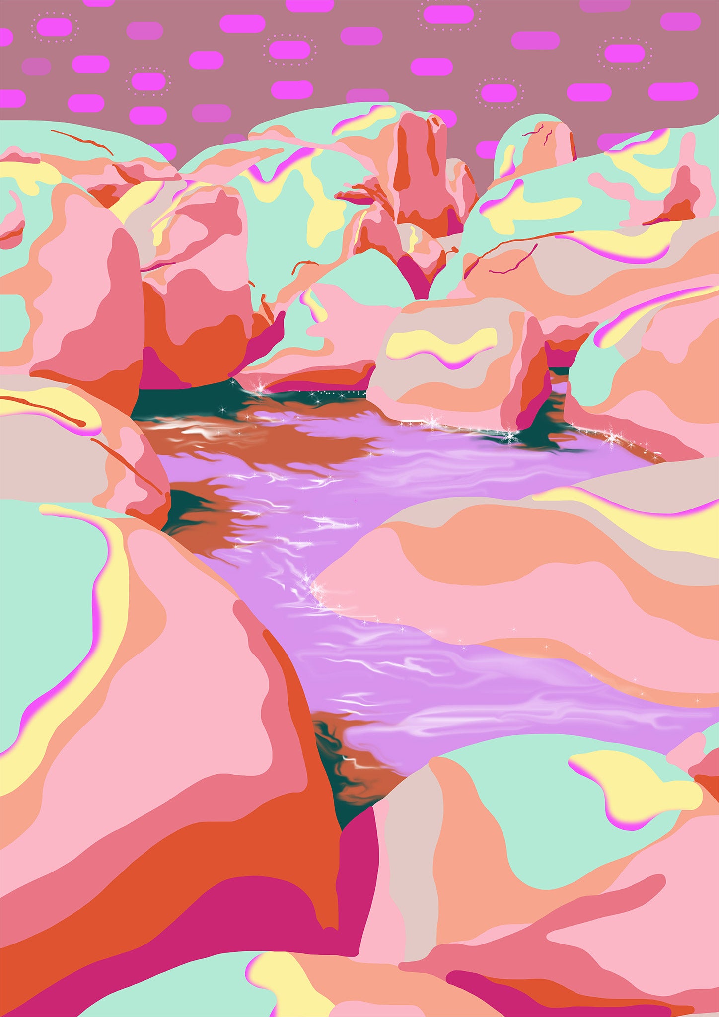 A premium Giclée print of my original hand-drawn illustration, Pink Rocks.