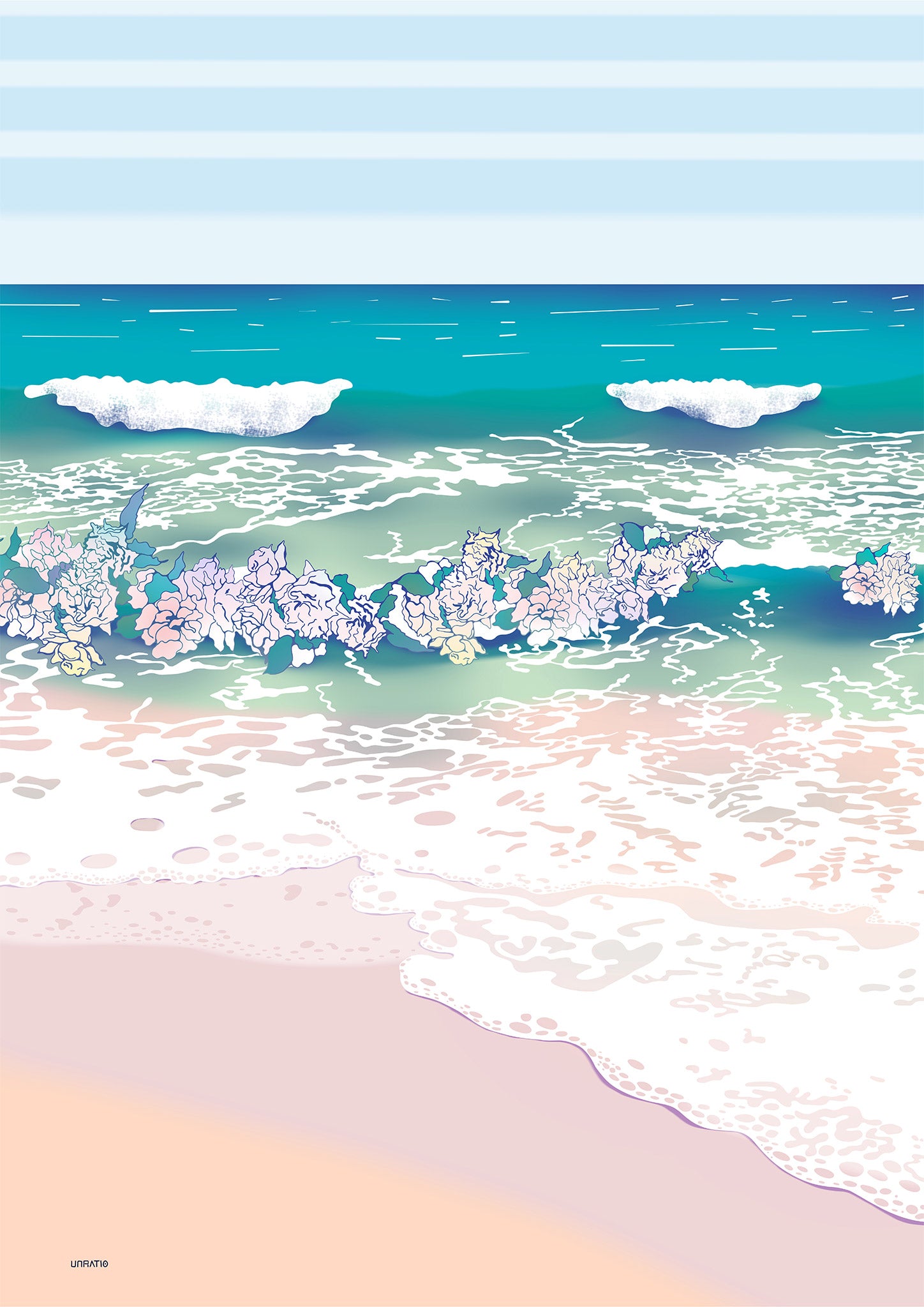 A premium Giclée print of my original hand-drawn illustration, Rose Surf.