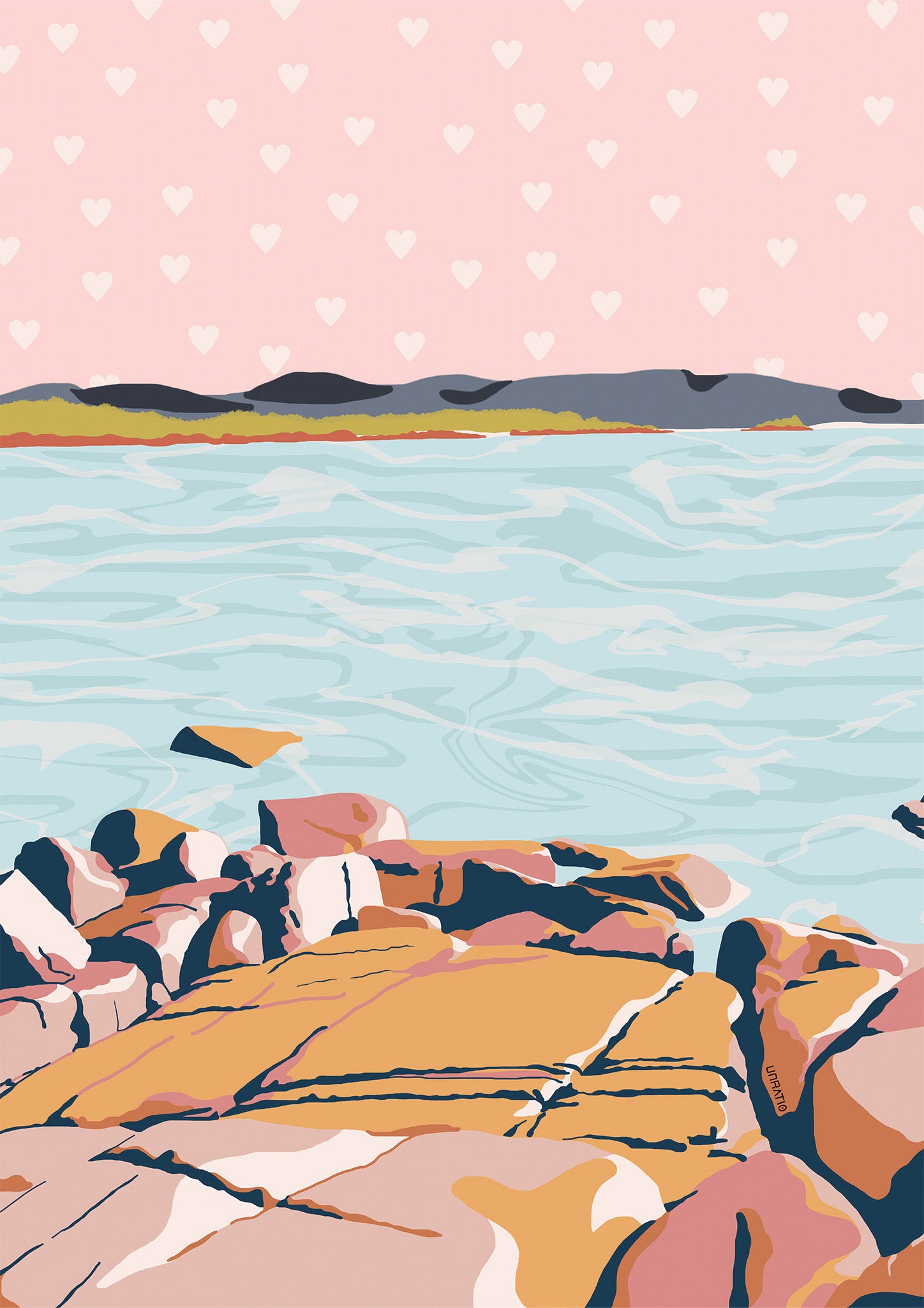 A premium Giclée print of my original hand-drawn illustration, Terracotta Bay.