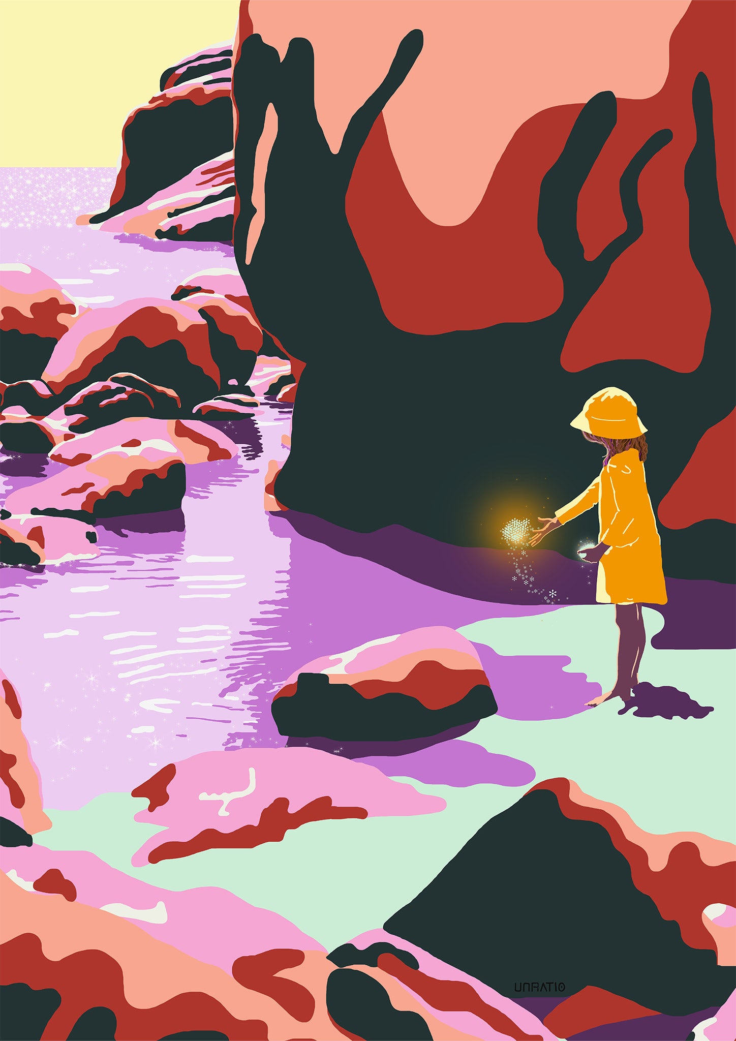 A premium Giclée print of my original hand-drawn illustration, Throwing Sand.
